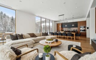 Experience the ultimate in luxury and convenience with this exceptional four-bedroom, five-bath residence, designed for both comfort and style. The open-concept living space enhances gatherings with a spacious oversized sectional, a dining table for twelve, and a stylish bar with seating for four. The beautifully designed kitchen, accented with warm wood tones, is fully equipped with a wine cooler, wet bar, and floor-to-ceiling windows that flood the space with natural light, creating an inviting atmosphere.