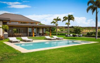 This magnificent oceanview estate, certain to delight even the most discerning traveler, offers a great room with sliding glass pocket doors for indoor/outdoor island living, a superior chef’s kitchen with natural stone countertops and professional-series appliances (including double ovens), a wet bar, dining table for eight, and custom-crafted woodwork throughout, air conditioning and ceiling fans, a laundry room, Sonos sound system, designer lighting, and refined artwork. Savor panoramic ocean vistas from the private swimming pool and hot tub, or relax on the lavishly furnished lanai with a Master Forge BBQ. This residence is a 10-minute walk from the beach.